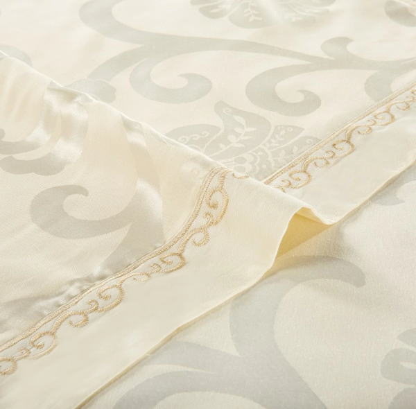 シルク調 ベッドカバー4点(シングル/3点)セット ユーロデザインジャガード豪華ゴールドカラー寝具セット